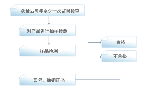 2.認(rèn)證機構(gòu)將編寫監(jiān)督檢查計劃,并按計劃派出檢查組到企業(yè)對產(chǎn)品一致性進(jìn)行工廠檢查,并根據(jù)檢查結(jié)果決定是否對產(chǎn)品進(jìn)行抽樣檢測。